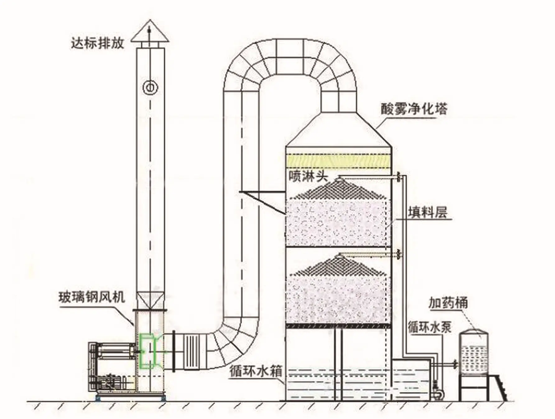 噴淋塔為實(shí)施噴淋法治理廢氣或回收原料的重要組成設(shè)備,故又稱為水洗塔、洗滌塔、凈化塔。根據(jù)廢氣類別及噴淋液的不同可分為水噴淋塔、酸噴淋塔、堿噴淋塔、油噴淋塔、水膜除塵/濕式除塵器;按形狀也可分為立式洗滌塔、臥式洗滌塔;按材質(zhì)又為分PP洗滌塔、玻璃鋼洗滌塔等。 噴淋塔運(yùn)行方式是不斷將酸霧廢氣由風(fēng)管引入凈化塔,將廢氣與氫氧化鈉吸收液進(jìn)行充分接觸吸收中和反應(yīng),酸霧廢氣經(jīng)過凈化后,再經(jīng)除霧板脫水除霧后由風(fēng)機(jī)排入大氣。吸收液在塔底經(jīng)水泵增壓后在塔頂噴淋而下,之后回流至塔底水箱內(nèi)如此進(jìn)行循環(huán)使用。凈化后的酸霧廢氣可以達(dá)到地方排放標(biāo)準(zhǔn)的排放要求,也會(huì)低于國(guó)家排放標(biāo)準(zhǔn)。