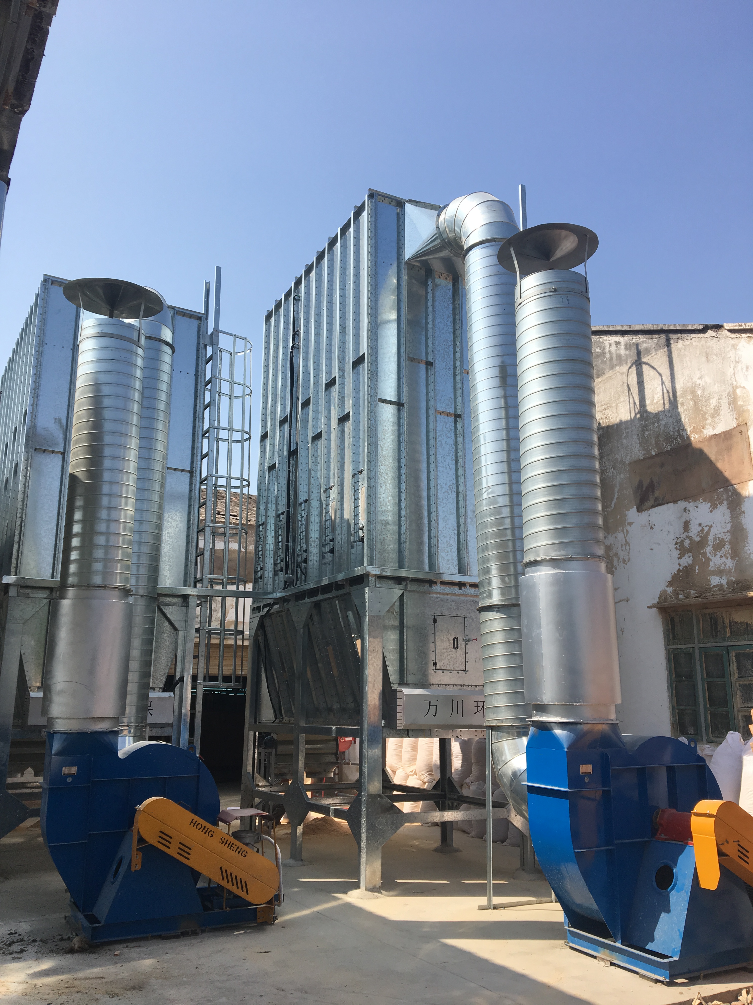 根據(jù)車間設(shè)備布置情況,由于木工機械吸塵口所需的風(fēng)量及風(fēng)壓、風(fēng)速要達到要求,并預(yù)留一些風(fēng)量,因此我們采用過濾能力較強脈沖袋式除塵器,匹配相應(yīng)的排塵風(fēng)機,達到最佳吸塵效果。