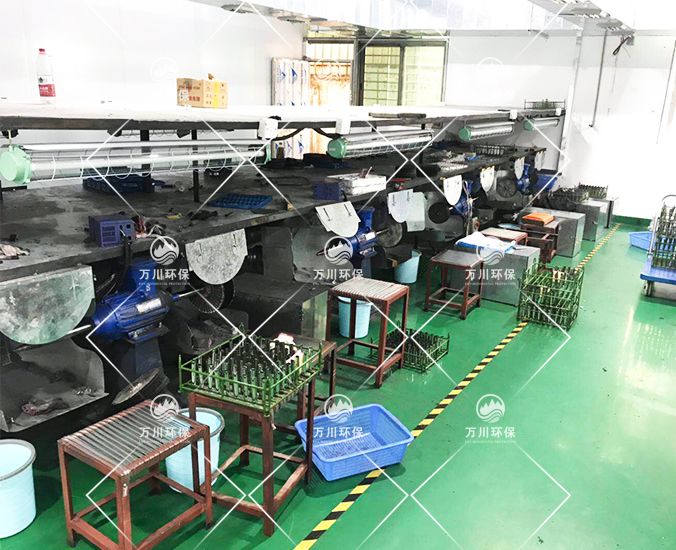 東莞某五金制品公司主營業(yè)務(wù)是生產(chǎn)不銹鋼、鐵、鋁等金屬制品以及零配件,該廠打磨拋光車間有20臺打磨拋光設(shè)備。每當(dāng)這些設(shè)備工作時(shí),車間內(nèi)飄揚(yáng)的粉塵不僅會讓人產(chǎn)生不適感,危害到人體健康,而且該車間的金屬粉塵是帶易燃性質(zhì)的,所以也存在很大的安全隱患??蛻羝惹行枰嚓P(guān)的專業(yè)環(huán)保公司為其處理粉塵問題,通過前期多家對比,最終選定我司。