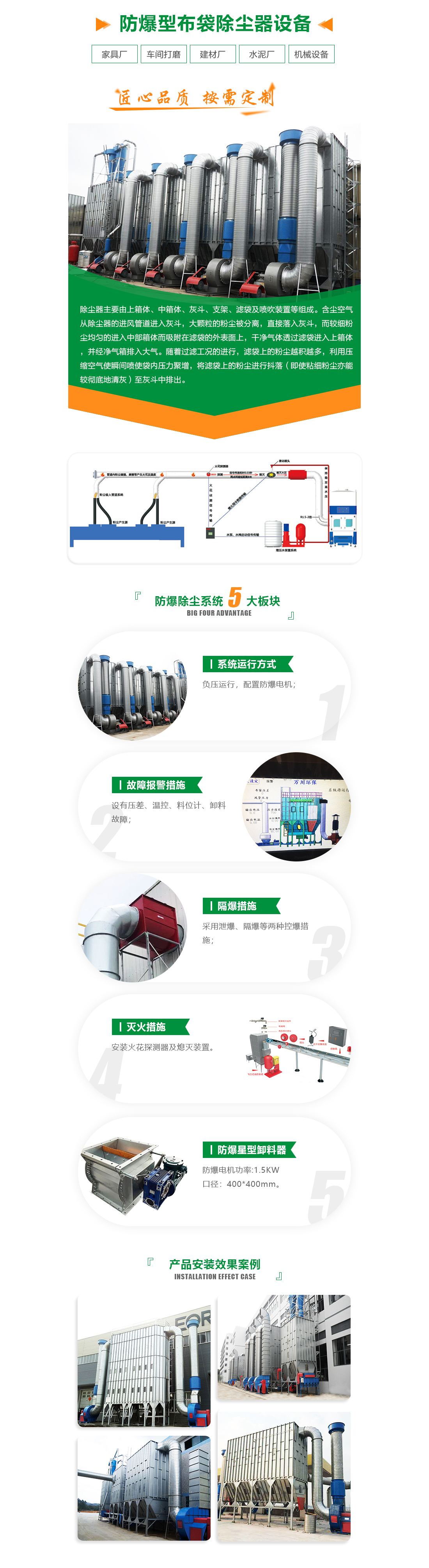簡介:防爆布袋除塵器采用全新防燃、防爆結(jié)構(gòu)設(shè)計,外加齊全的安全監(jiān)測與消防措施,如除塵器箱體增加了泄爆片、除塵器頂部安裝消費噴淋管、溫控模塊、壓差模塊等.。消除了收塵器內(nèi)部燃燒、爆炸的隱患,確保了除塵器長期穩(wěn)定、高效地運(yùn)行。