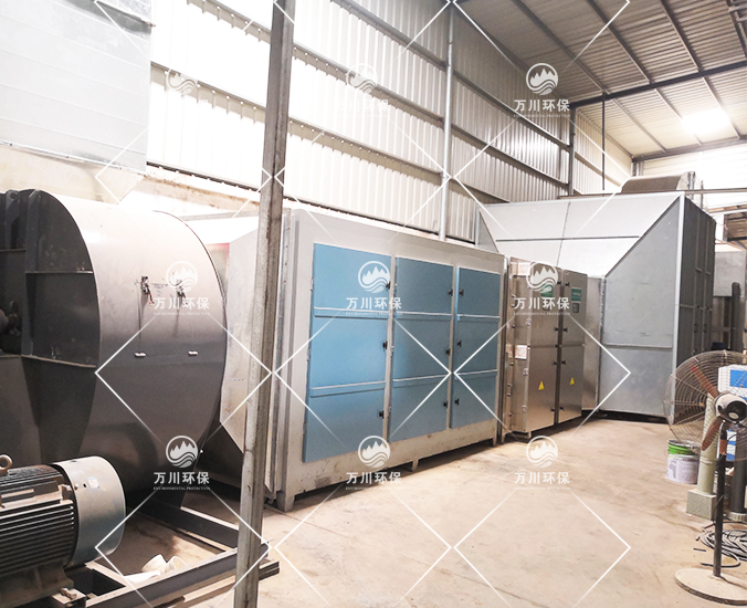 廣東惠州某實業(yè)有限公司是專業(yè)設計開發(fā)、生產(chǎn)制造、銷售經(jīng)營及安裝防火門、入戶門、裝甲門等門系列產(chǎn)品的股份制企業(yè)。該公司廠房內設有噴漆生產(chǎn)線,生產(chǎn)期間有噴漆廢氣產(chǎn)生,我們萬川環(huán)保公司為其提供噴漆廢氣處理解決方案。
