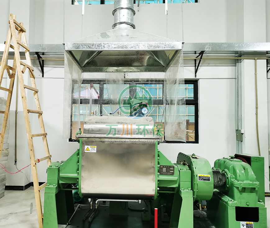 東莞某硅膠廠,成立于2003年,位于東莞市麻涌鎮(zhèn),主要從事高科技的按鍵油墨及特種有機(jī)硅產(chǎn)品的研發(fā)、生產(chǎn)、銷售,該公司中設(shè)有捏合機(jī)生產(chǎn)車間,在生產(chǎn)工序中有廢氣和粉塵產(chǎn)生,污染了生產(chǎn)環(huán)境。對(duì)此,我們?nèi)f川環(huán)保為該公司提供捏合機(jī)廢氣粉塵處理解決方案。